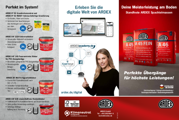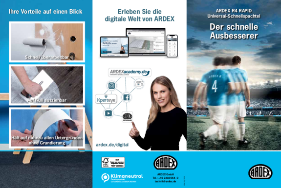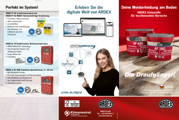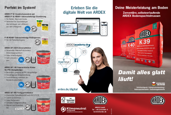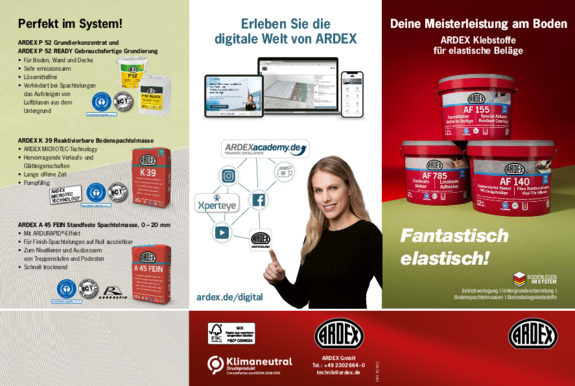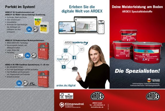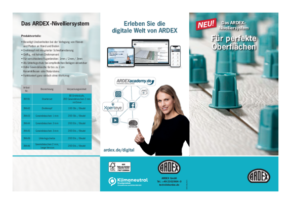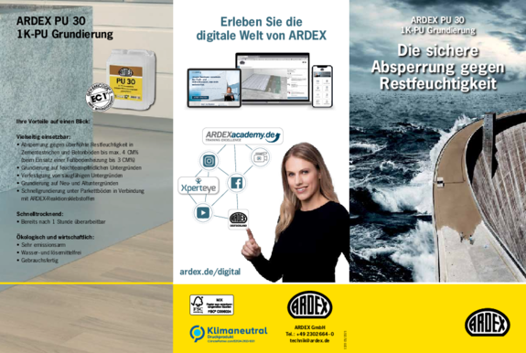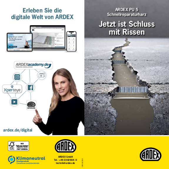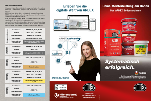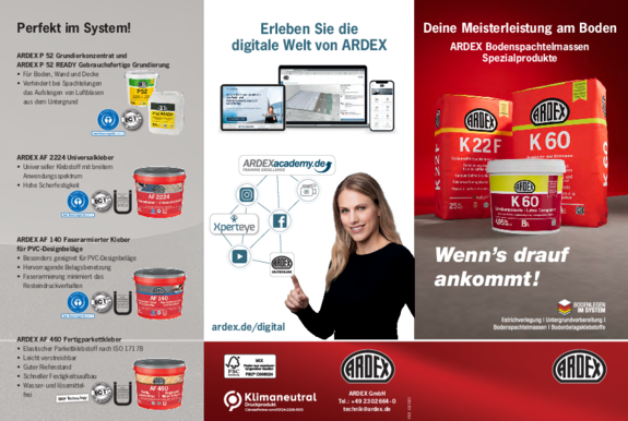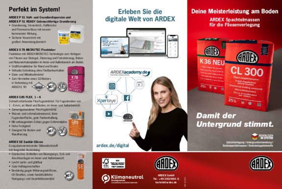 ARDEX bietet Ihnen zahlreiche Informationsmaterialien und Hilfsmittel, die Sie bei Ihrer Arbeit unterstützen. Hier können Sie die Materialien herunterladen.