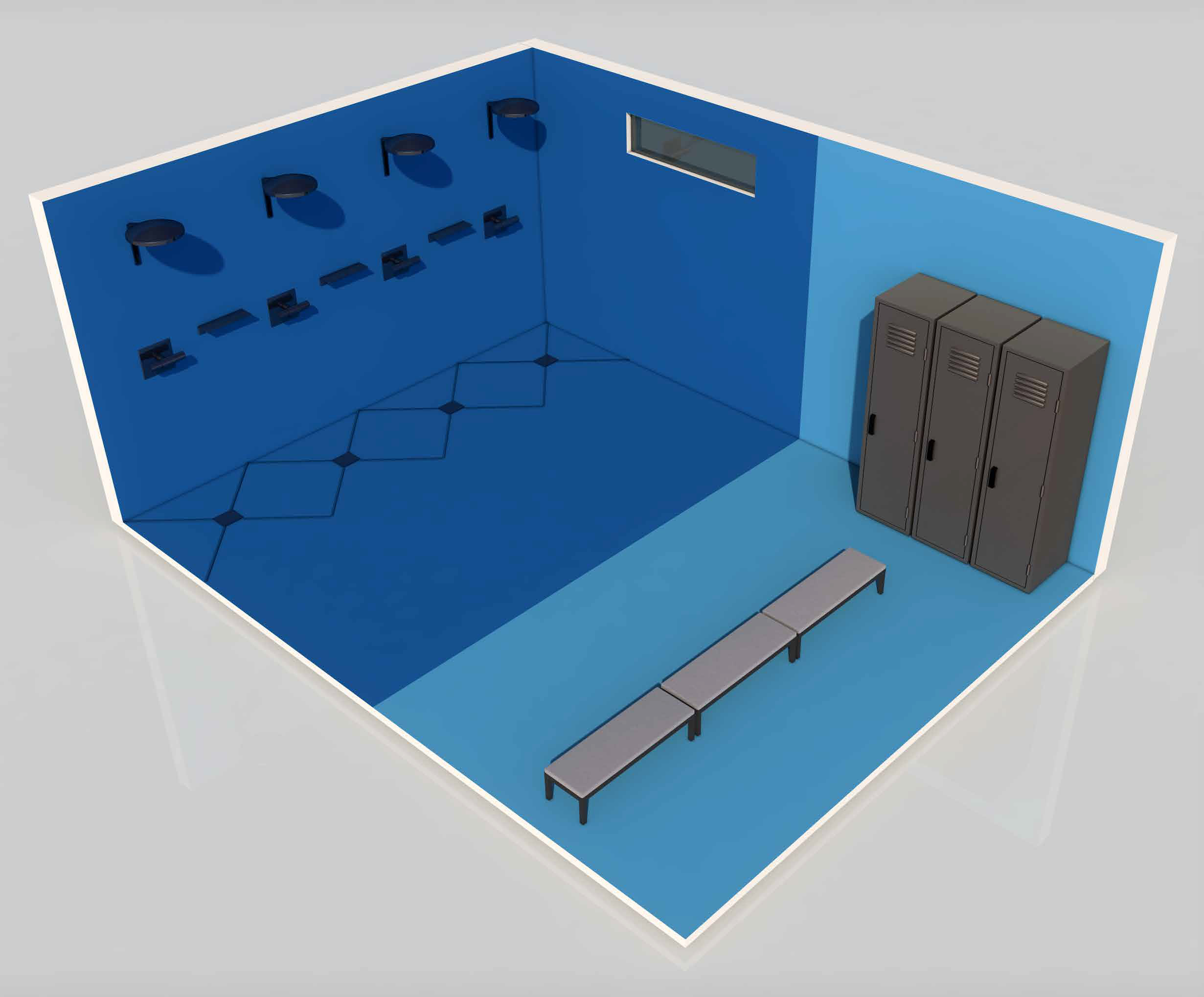 W2-I (élevée) Surfaces fréquemment exposées à des projections d’eau et/ou à l’eau de service, avant tout sur le sol, intensification temporaire par accumulation d’eau. |
