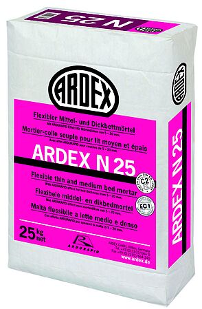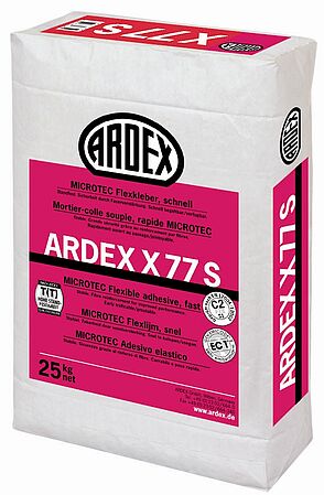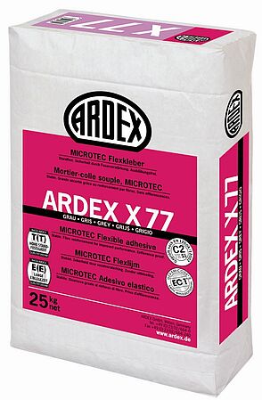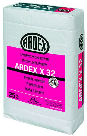 Mogelijke producten zijn: ARDEX X 32 (Let op, hier kan het nodig zijn om een zandmengsel aan te brengen of om de achterkant van de tegels te egaliseren)