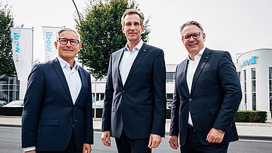 [Translate to BeNeLux-nl:] Mark Eslamlooy, Stephan Wedi, Fabian Rechlin vor dem wedi Gebäude