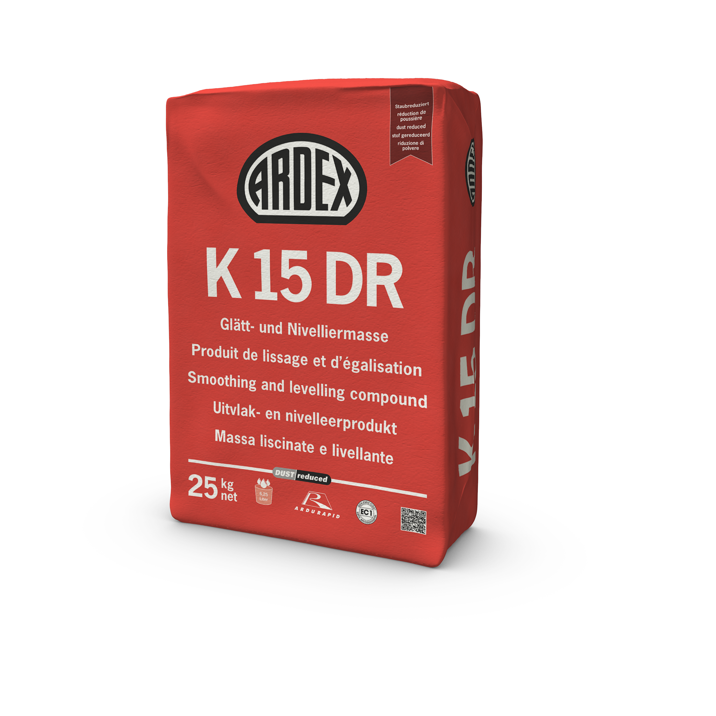 De klassieker ARDEX K 15 DR is de maatstaf voor perfect vloeigedrag. Voor het uitvlakken en egaliseren van cement-, gietasfalt- en calciumsulfaatgebonden gietdekvloeren evenals andere vloeren, die met textiele en elastische bedekkingen, tegels of parket worden belegd. Opvullen van naden in betonnen funderingen en vloeren, voor het leggen van alle soorten vloerbedekkingen en als afwerklaag in kelders en op zolders. Omdat ARDEX K 15 DR stofarm is, is dit egalisatieproduct als zeer emissiearm geclassificeerd.
