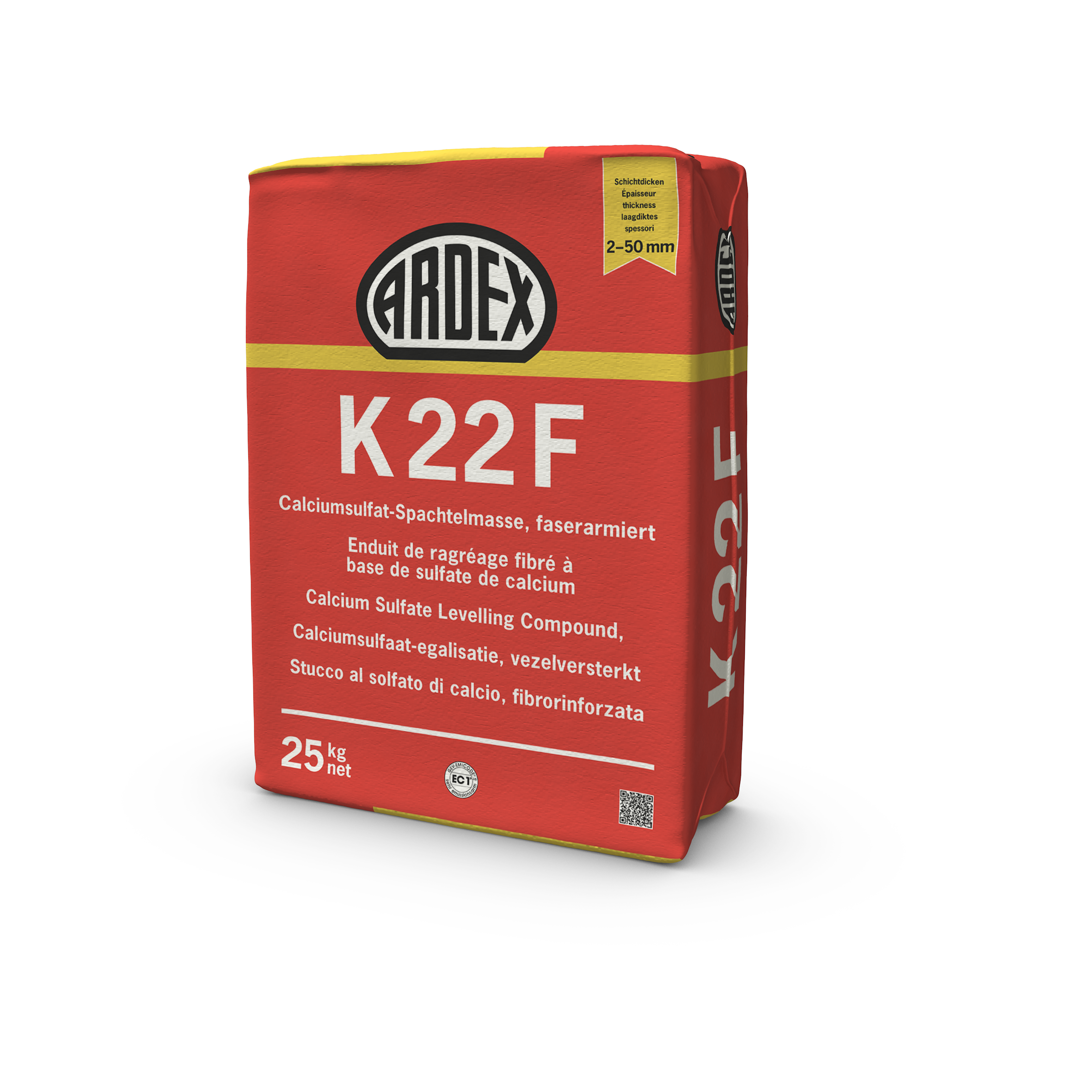 ARDEX K 22 F calciumsulfaat-egalisatie om een ondergrond met oneffenheden weer perfect glad te maken. Ideaal voor renovatie binnen, op uiteenlopende, onstabiele oude ondergronden die als kritiek worden ingeschat voor de daaropvolgende werkzaamheden. De spanningsarme calciumsulfaat-egalisatie is uitstekend geschikt voor het uitvlakken en egaliseren en creëert een ideaal legoppervlak voor elastische en textiele vloerbedekkingen, parket- en tegelvloeren. Voor gebruik op calciumsulfaat-, cement-, gietasfalt- en magnesietdekvloeren, droge dekvloeren, houten spaanplaten, houten planken vloeren, ondergronden met oude watervaste lijm- en egalisatieresten en andere ondergronden.
