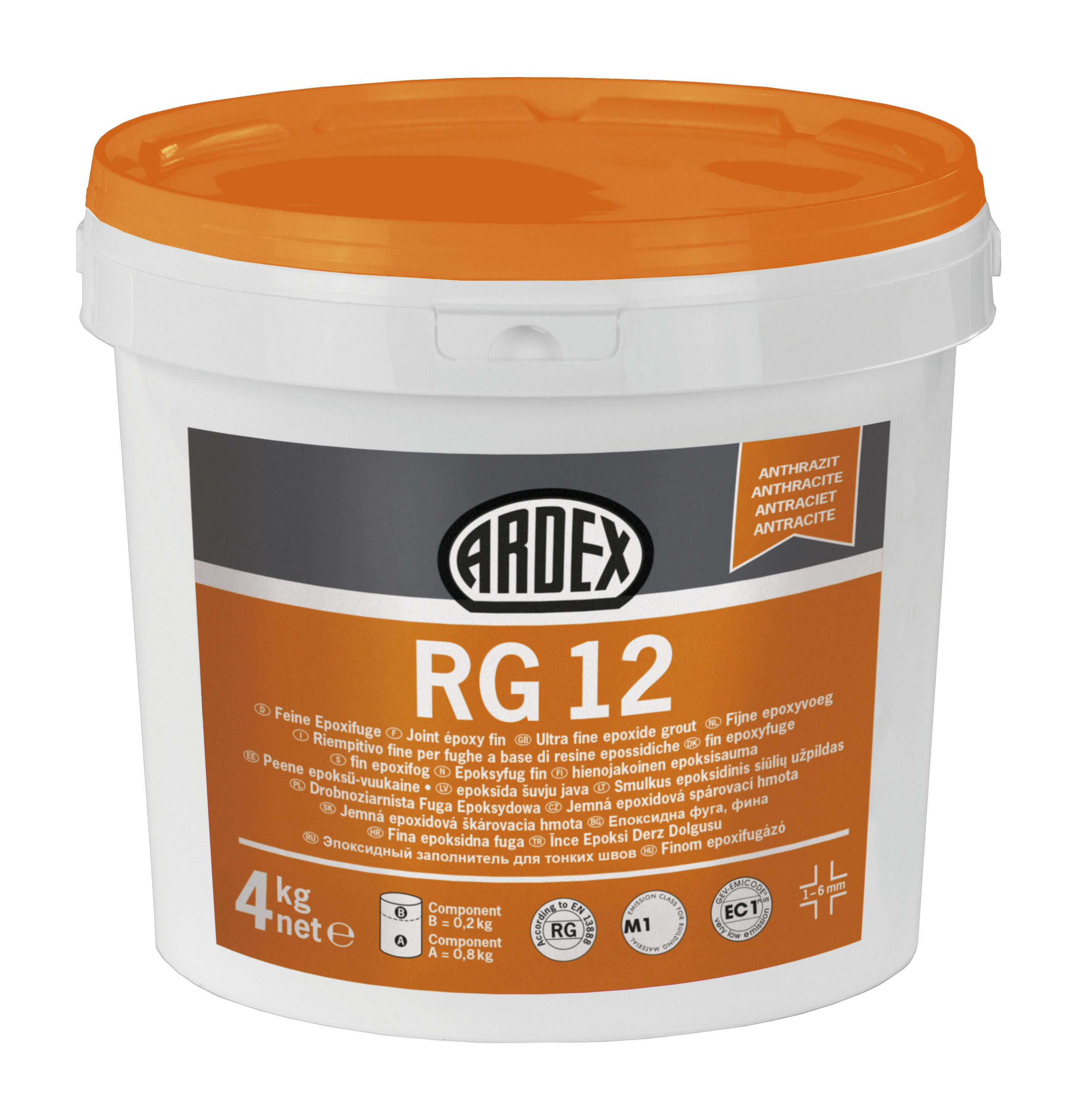 ARDEX RG 12 1 – 6: de perfecte oplossing. Herkent u dit? Ondanks intensief en regelmatig reinigen van badkamer en keuken zien de voegen er na een tijdje onverzorgd uit. Dat ligt meestal aan de reinigingsproducten die gebruikt worden. Ze bevatten meestal citroenzuur of azijnzuur. Hierdoor kunnen het dan wel uitstekende kalkoplossers zijn, ze verwijderen echter niet alleen de kalkaanslag van de tegels en kranen maar tasten ook het gebonden cement in de voeg aan. Door de zuren in het reinigingsmiddel kunnen er kleurverschillen (vlekkerigheid), witte uitslag en lelijke gaten ontstaan. ARDEX heeft de perfecte oplossing voor u, want voor deze ruimtes is ARDEX RG 12 het ideale product. Dankzij de nieuwe epoxyvoeg, die gegarandeerd bestand is tegen allerlei soorten huishoudelijke schoonmaakmiddelen, blijven uw voegen in de badkamer, keuken en andere zwaar belaste ruimten duurzaam schoon. ARDEX RG 12 overtuigt bovendien met goede verwerkingseigenschappen en is eenvoudig in te voegen en te wassen. ARDEX RG 12 1-6 voldoet aan de eisen RG conform EN 13888 en is zeer emissiearm – EC 1 R PLUS – conform GEV EMICODE.